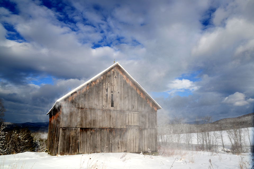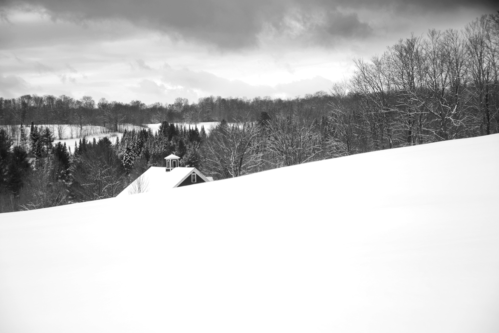 Just another February day in East Montpelier, although it changed from a sunny, windy one whipping the snow off the barn below to the quiet, overcast scene above in about 30 minutes. Next up: Using a Sony RX100 in a snowstorm.