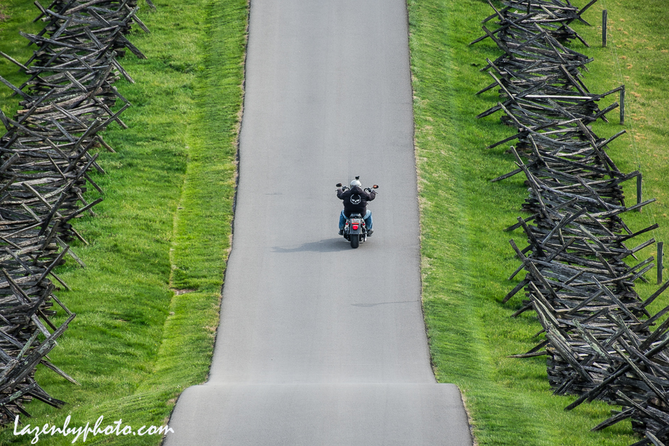 Motorcyclist rides at the Antietam National Battlefield, Sharpsburg, MD.
